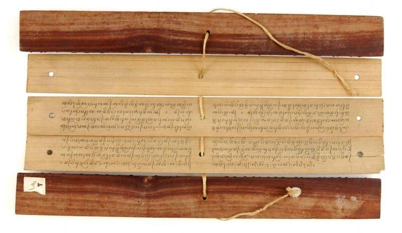 Writing on a palm-leaf manuscript. Tropenmuseum Collection. Public domain, via Wikimedia Commons