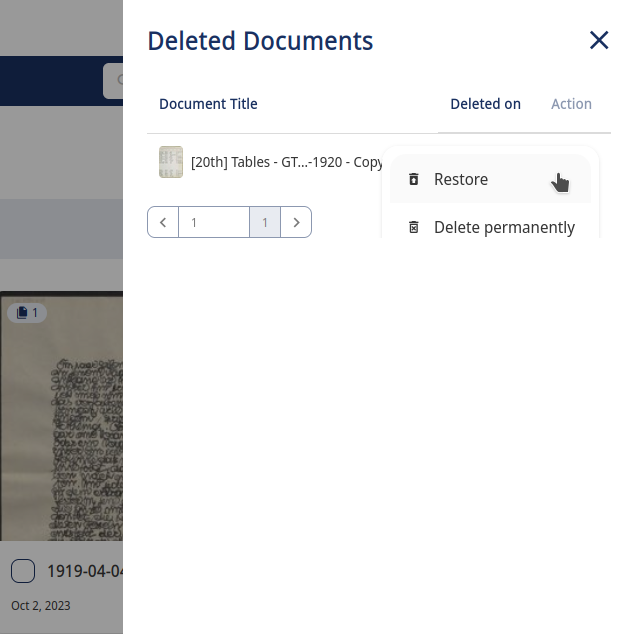 Restore Documents: Deleted documents are not immediately removed, instead they are now stored in the recycle bin for 14 days, allowing users to either restore them or permanently delete them. Simply open the bin, click the 3-dot context menu next to the deleted document and select the ‘Restore’ action.